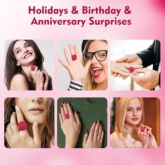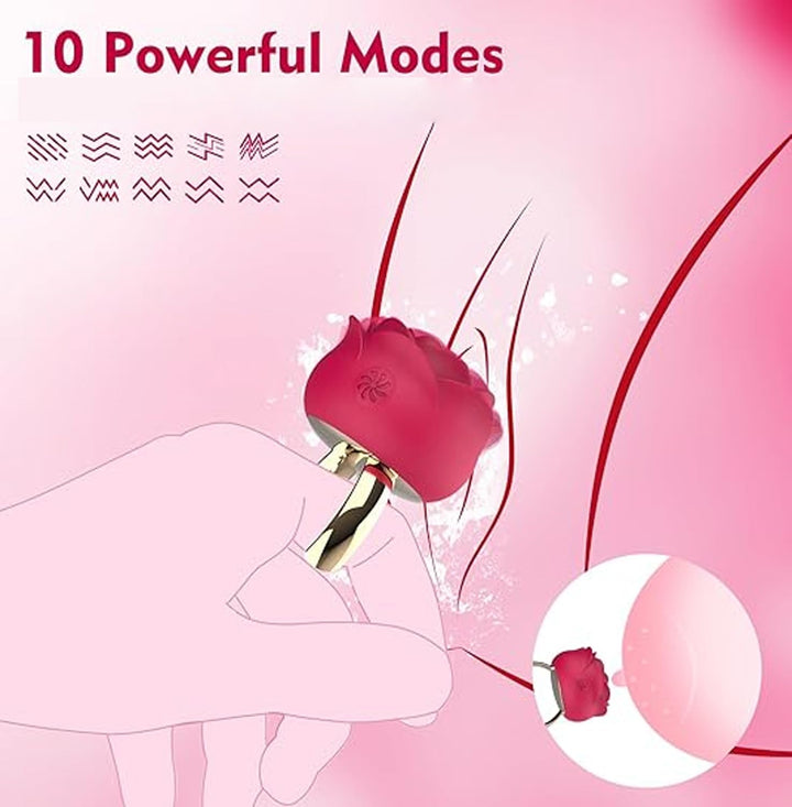 This mini rose ring features a stylish open ring design, allowing for an adjustable, comfortable fit for most finger sizes. Its delicate rose detail adds a touch of elegance and charm, making it not only a pleasure device but also a beautiful accessory.